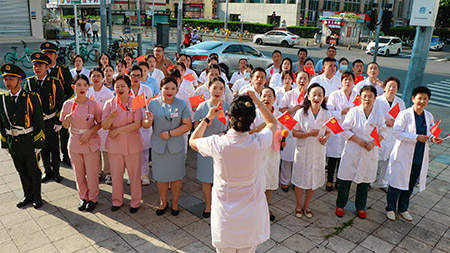 升旗儀式上,黨支部書記、院長劉穎以《醫心向黨守初心,與院共進擔使命》為主題發表微黨課講話。她強調,愛國就是要立足本職崗位,以精湛醫術和溫暖服務守護人民健康,將“以患者為中心”落到實處。她號召全體職工珍惜平台、團結奮進,以實際行動推動醫院高質量發展,為健康中國建設貢獻力量。